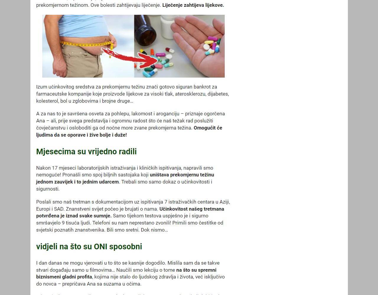 “Sklon sam višku kilograma i uvijek sam sa zavišću gledao svoje vitke djevojke koje su imale veliki uspjeh kod suprotnog spola, za razliku od mene. Od djetinjstva sam imao spor metabolizam, pa ni sport nije pomogao da radikalno promijenim proporcije. Sve se promijenilo kupnjom Activestin. Recenzije na internetu za njih su jednostavno nevjerojatne, a iako ne vjerujem lijekovima za sagorijevanje masti, a pogotovo recenzijama na internetu, ovaj me zainteresirao zbog svog bogatog biljnog sastava! Nakon mjesec dana uzimanja tableta dva puta dnevno, mogu reći da stvarno ispunjavaju svoja obećanja. Izgubila sam 12 kilograma i odmah počela izgledati i osjećati se mnogo bolje. Sada konačno mogu nositi odjeću koja mi se sviđa, a kilogrami kao da se ne vraćaju, iako su prošla 2 mjeseca otkako sam završila kuru mršavljenja, a prehranu nisam promijenila!”