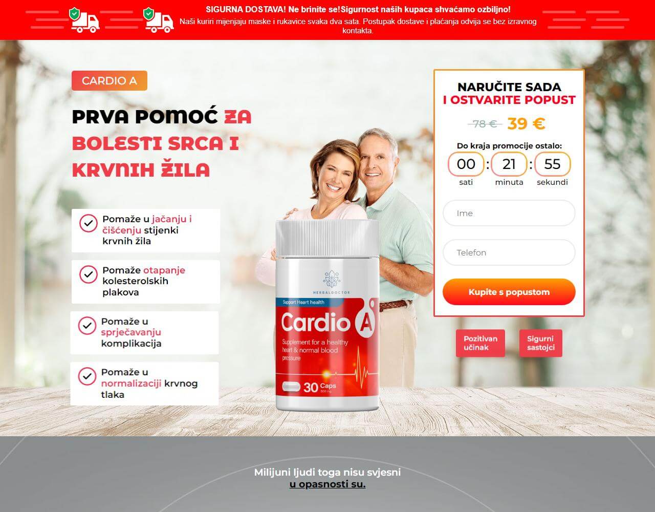 Cardio A kapsule namijenjene su za liječenje hipertenzije. Cardio A sadrži visoko ekološki prihvatljive komponente biljnog podrijetla koje reguliraju otkucaje srca, normaliziraju stanje krvnih žila i imaju ukupni pozitivan učinak na organizam. U našem članku pronaći ćete detaljne informacije o kompleksu, kao i točne upute za korištenje proizvoda. Ovdje također možete pronaći pouzdane recenzije kupaca koji su već poboljšali svoje zdravlje uz pomoć Cardio A. Cardio A je nemoguće kupiti u ljekarnama u Hrvatskoj, saznat ćete gdje možete naručiti ove kapsule po vrlo atraktivnoj cijeni.
